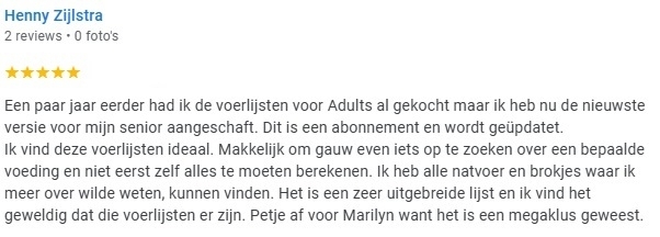 | "Koos werd wat te dik en zelf kwam ik er niet uit. Nu valt Koos langzaam af en geeft niet meer over. Kortom; super nuttig advies gekregen en Koos zit weer goed in zijn (losse) vel!" |